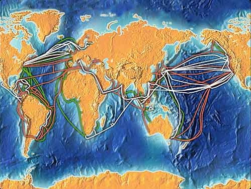Hier eine Weltkarte mit allen Unterseekabeln der Welt